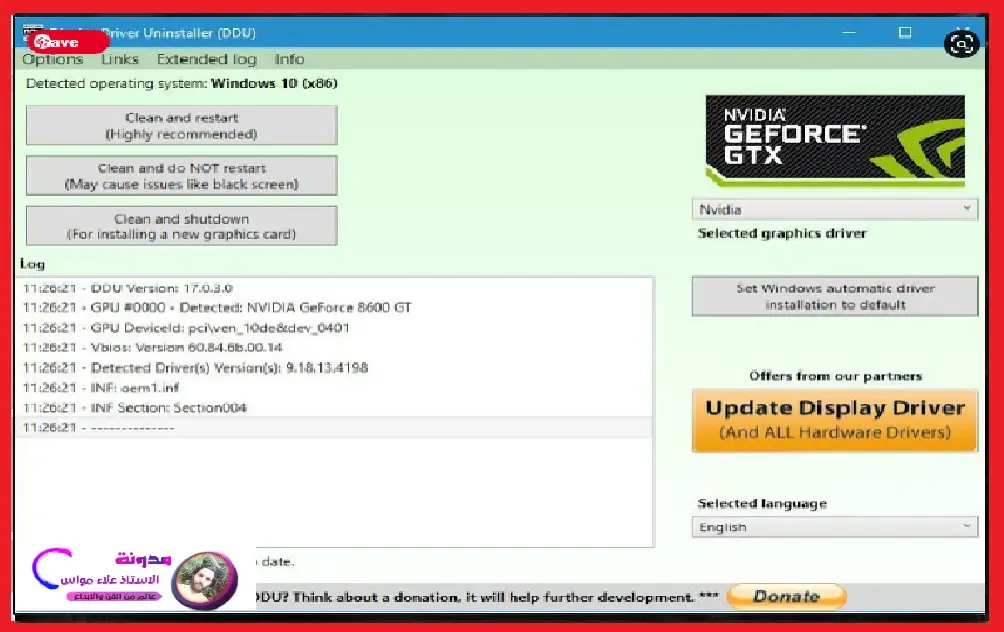 - برنامج Display Driver Uninstaller 2020 هو الاسم الكامل للبرنامج
